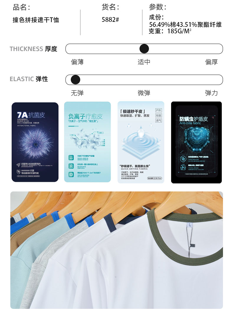 零感速干棉撞色T恤5882#