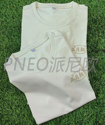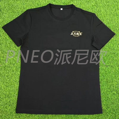 圓領T恤作為最經典的基礎款服飾之一,不僅穿著舒適,而且非常實用。由于它的領口設計,使得空氣流通性較好,穿起來不會感到悶熱。同時,圓領T恤的面料通常也比較柔軟、透氣,穿著起來非常舒適。這款圓領的T恤定制正是我們為餐飲行業"正月麺家‘’定制的工作服。 黑色的顏色更為耐臟一點,可以根據崗位的不同選擇不一樣的顏色,這樣更加有利于崗位人員的辨認。 一個有個性Logo需要能體現出一個餐廳的特色和理念。設計具有自己特色的logo能夠有效的增加餐廳的辨識度,定制一款有高辨識度的工作服可以成為品牌的特色之一,讓顧客在用餐過程中感受到獨特的體驗。比如,有的品牌將工作服設計成具有年代感、文化特色的款式,、特色的logo設計。讓顧客在用餐的同時,也能感受到品牌所傳達的文化內涵。 工作服作為食品安全的一部分,對食品安全意識的提高也起著推動作用。而一款簡約舒適的圓領T恤可以給人營造出一種舒適感。